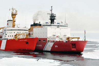 Keywords: arctic ocean sea ice seaice uscg usgs healy st-laurent stlaurent cutter coast guard coastguard boat vehicle ship outdoor ARCTIC OCEAN – The Canadian Coast Guard Ship Louis S. St-Laurent ties up to the Coast Guard Cutter Healy in the Arctic Ocean Sept. 5, 2009. The two ships are taking part in a multi-year, multi-agency Arctic survey that will help define the Arctic continental shelf. Photo Credit: Patrick Kelley, U.S. Coast Guard ARCTIC OCEAN – The Canadian Coast Guard Ship Louis S. St-Laurent ties up to the Coast Guard Cutter Healy in the Arctic Ocean Sept. 5, 2009. The two ships are taking part in a multi-year, multi-agency Arctic survey that will help define the Arctic continental shelf. Photo Credit: Patrick Kelley, U.S. Coast Guard |