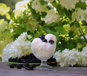 Keywords: ice cream food plate sweet dessert fruit jam delicious table colorful dish nutrition taste dinner sweets berry blackberry white greens hydrangea summer outdoors confectionery tasty
