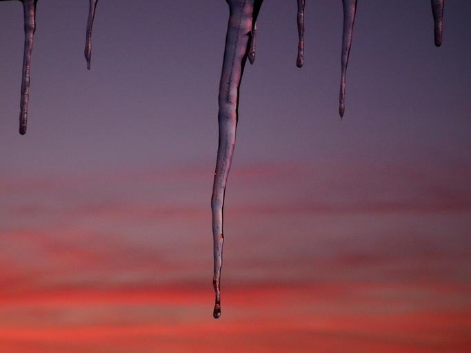 Keywords: ice icicle winter cold frozen sunset sky red violet purple