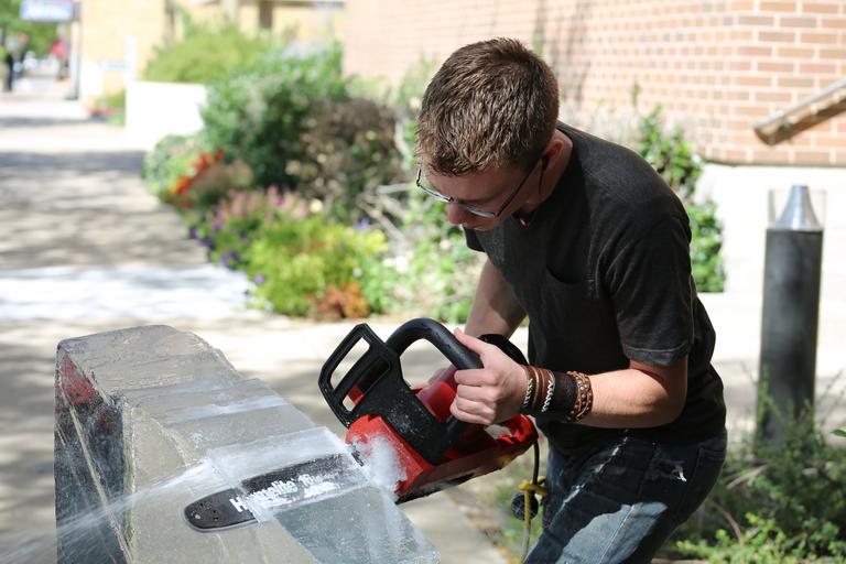 Keywords: ice sculpture man outside sawing male saw person tool adult work worker job cut equipment blade young outdoors machine human ice sculpture carving cutting shaving chisel shavings building art skill carver