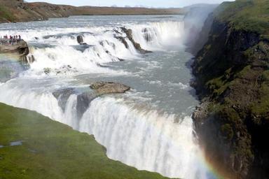Keywords: iceland gullfoss waterfall landscape river water nature enormous force of nature water power rainbow