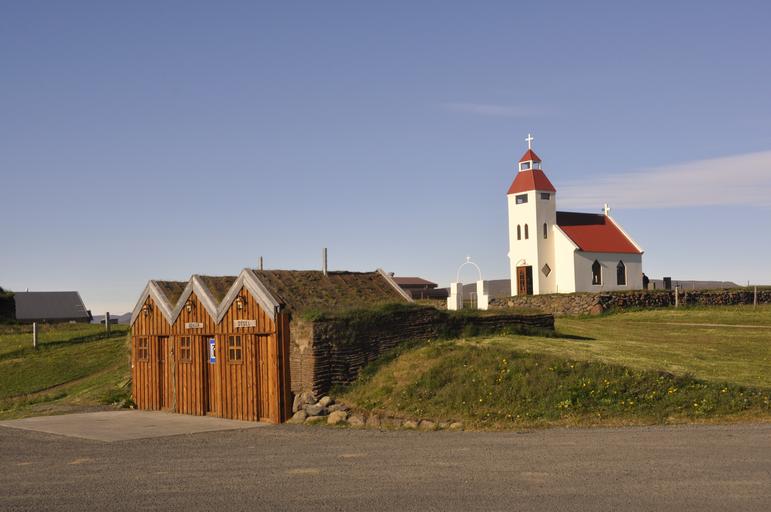 Keywords: iceland village church petrol station cottages summer