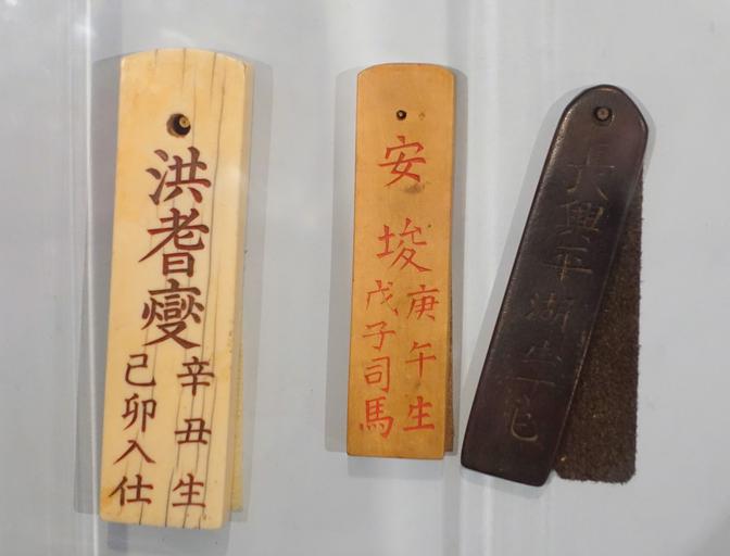 | Keywords: Identity tags (hopae), Korea, Joseon, late 19th and early 20th century, ivory, wood - National Museum of Natural History, United States - DSC00545.jpg en Exhibit in the National Museum of Natural History Washington DC USA This artwork is in the public domain because the artist died more than 70 years ago Photography was permitted in the museum without restriction 2015-03-27 12 55 58 own Daderot other versions PD-old-70 cc-zero Ethnographic items in the National Museum of Natural History USA Hopae |