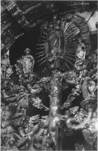 | Keywords: talha portugal robert chester smith robertchestersmith beja robert smith igreja igreja de santa maria igrejadesantamaria fundação calouste gulbenkian fundaçãocaloustegulbenkian biblioteca de arte bibliotecadearte Altar de Nossa Senhora do Rosário: pormenor do retábulo da árvore de Jessé, 1676, século 17. Fotógrafo: Robert Chester Smith (1912-1975). Data de produção da fotografia original: 1962-1964. [CFT008.0140.ic] Altar de Nossa Senhora do Rosário: pormenor do retábulo da árvore de Jessé, 1676, século 17. Fotógrafo: Robert Chester Smith (1912-1975). Data de produção da fotografia original: 1962-1964. [CFT008.0140.ic] |