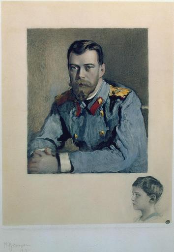 | Keywords: Портрет императора Николая II с портретом-ремаркой наследника-цесаревича Алексея Николаевича.jpg  Artwork Creator Mikhail Rundaltsov after Се ов Валентин Александ ович 1913 бумага офо т аква ель тушь 28 2х21 5 см; 52х37 5 см лист Museum Hermitage object history exhibition history credit line accession number ЭРГ-28931 place of creation http //www hermitagemuseum org/wps/portal/hermitage/digital-collection/04 +Engraving/1628739/ lng ru PD-old-auto 1935 Nicholas II Serov Alexei Nikolaievich of Russia Imperial portrait engravings in the Hermitage Mikhail Rundaltsov 1910s portraits of Russia male Files uploaded by Andrew Butko from various sources |