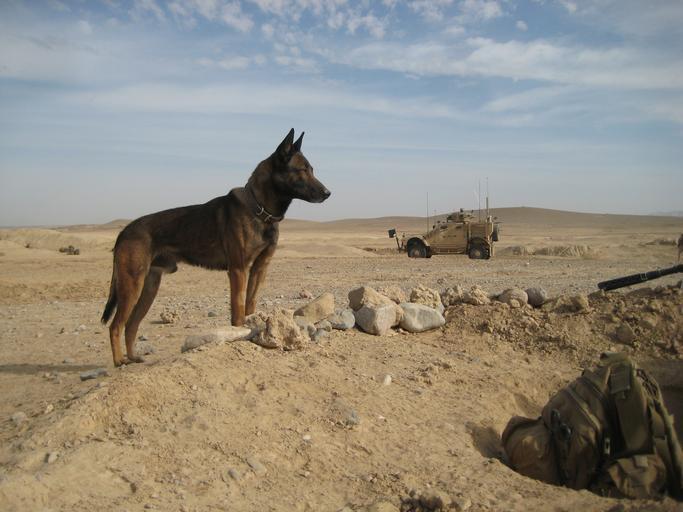 | Keywords: II MHG Military Working Dog Platoon completes Afghanistan tour DVIDS432653.jpg en A military working dog with Military Working Dog Platoon Military Police Support Company II Marine Expeditionary Force Headquarters Group keeps a look out during a mission in Helmand province The platoon supported numerous missions during their seven month deployment to Afghanistan 2011-07-20 Forward https //www dvidshub net/image/432653 110720-N-+++++-004 2011-07-24 05 13 HELMAND PROVINCE AF PD-USGov-Military-Navy Helmand Province in the War in Afghanistan 2001-present Images from DoD uploaded by Fæ |