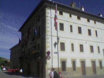 Keywords: Ikurriñavillava2007.jpg Imagen del Ayuntamiento de Villava-Atarrabia Navarra en la que se aprecia la Ikurriña bandera vasca colocada por el propio Ayuntamiento de la localidad navarra en un mastil a escasos metros de la casa consistorial a la misma altura de las banderas oficiales En dicha población anteriormente se había realizado un referendum que posibilitó su colocación junto con las enseñas oficiales localidad comunidad España Europa Tras la aprobacion de la Ley de Símbolos en Navarra su uso en los edificios públicos no está permitido por lo que algunas localidades navarras la situan en un mastil cercano al Ayuntamiento como expresión de su iodentidad Tras las elecciones municipales de mayo de 2007 que propiciaron un cambio de gobierno en Villava-Atarrabia el nuevo Ayuntamiento formado por la coalición Nafarroa Bai colocó la ikurriña como se aprecia en la fotografía en Octubre de 2007 Por parte de UPN se anunció el inicio de acciones legales sin que hasta la fecha exista resolución sobre el particular Own 2007-10 Ultrasiete Town hall of Villava |