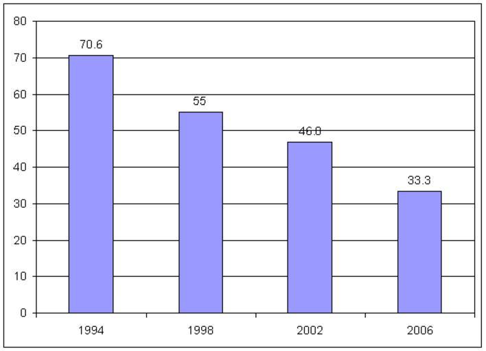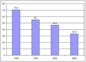 | Keywords: Illarionov FreedomIndex.PNG Freedom House Index of Russia as percentage to the average OECD data en Andrey Illarionov own 2007-05-08 Alex Bakharev based on slide 10 from http //www iea ru/article/siloviki_model/12_04_07_1 ppt Illarionov presentations Freedom House |
