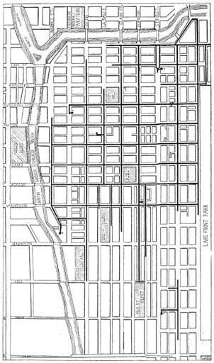 Keywords: IllinoisTunnelMap1902.png en Original Caption Showing Conduits as Completed Sept 1 1902 Retouched to remove spots and improve legibility The short side spurs terminating in dots are the shafts used to construct the tunnel system George W Jackson Scope Extent and Construction of the Underground Conduits of the Illinois Telephone and Telegraph Co in Chicago http //books google com/books id DJ4PAQAAIAAJ pg PA495 Journal of the Western Society of Engineers Vol VII No 5 Oct 1902 ; page 495 George W Jackson died 1922 1902-10 <gallery> file IllinoisTunnelMap1904 png 1904 tunnel map file IllinoisTunnelMap1910 png 1910 tunnel map file 1937 Chicago Tunnel Terminal Company jpg 1937 tunnel map </gallery> Chicago Tunnel Company Old maps of Chicago Rail transport maps of the United States PD-old |
