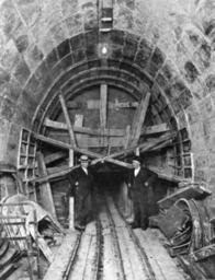 Keywords: IllinoisTunnelTrunkTunnelConstruction.jpg en Original captions Western Fig 8 View of Trunk Conduit Under Construction and inscribed on bottom of photo 9182 Illinois Telephone and Telegraph Co illegible Trunk System - Franklin Washington Sts Pages Fig 5 VIEW OF TRUNK CONDUIT UNDER CONSTRUCTION This image is a composite of both published versions in order to reduce artifacts from scanning and printing Trunk tunnels were 14 feet high by 12 3/4 feet wide The photo does not show the actual street intersection suggested in the title but the system map in Western Fig 17 suggests that this section of trunk tunnel is near the base of Construction Shaft No 3 on Franklin Since the shaft entrance is not in view the camera must be facing north toward the street intersection George W Jackson Scope Extent and Construction of the Underground Conduits of the Illinois Telephone and Telegraph Co in Chicago http //books google com/books id DJ4PAQAAIAAJ pg PA487 Journal of the Western Society of Engineers Vol VII No 5 Oct 1902 ; page 487 Also published in George W Jackson Underground Conduits in Chicago http //books google com/books id jz4AAAAAMAAJ pg PA323 Page's Magazine Vol II No 4 April 1903 ; page 323 George W Jackson died 1922 First published 1902-10 41 52 57 94 N 87 38 7 14 W region US-IL_heading N Chicago Tunnel Company Chicago in the 1900s Tunnel construction PD-old |