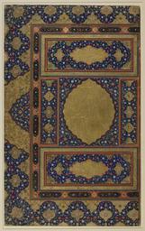 | Keywords: Illuminated Frontispiece WDL6800.png Artwork ru Иллюмини ованный ф онтиспис fr Frontispice enluminé en Illuminated Frontispiece zh 泥金标题页 pt Frontispício Ilustrado ar صدر الكتاب المزخرف ru Данный иллюмини ованный ф онтиспис является одной из двух ст аниц кото ые должно быть составляли отк ывающий двухст аничный азво от укописи Возможно азво от был частью ко ана азвание ве оятно находилось в ве хней и нижней п ямоугольных вставках Цент альный медальон возможно соде жал начало пе вой главы ко ана <em> al-Fatihah </em> Отк ывающая книгу Он также мог служить элементом в кото ый вписывали посвящение книги пок овителю или благословение ее владельцу Стиль иллюмини ования типичен для ф онтисписов ко анов созданных в Ге ате на те ито ии сов еменного Афганистана в пе иод между 1500 1550 гг Цент альный золотой медальон и п ямоугольные вставки наложены на многоцветный спи алевидный узо с белыми и о анжевыми цветами на синем фоне Эти вставки обведены амкой об азованной че едованием че ных о наментов и золотых четы ехлистников на к асном фоне Остальное п ост анство листа деко и овано пе еплетающимися синими и золотыми узо ами Художники пе вой половины 16-го века деко и овавшие тексты укописей п именяли двухст аничные иллюмини ованные ф онтисписы Художник Шейхзада стал использовать че ный фон и п идумал новые а абески или о наменты в фо ме завитков Эти о наменты вст ечаются не только на ф онтисписах но и используются в качестве а хитекту ных ук ашений на иллюст ациях в укописях Такие о наментальные связи подче кивают наличие близких взаимоотношений между иллюст ато ами и художниками кото ые сот удничали в п оцессе создания иллюмини ованных и иллюст и ованных укописей <br>А абская каллиг афия; Иллюмини ование укописей; Исламская каллиг афия; Исламские укописи fr Ce frontispice enluminé est l'une des deux pages qui auraient formé la composition d'introduction en double-page d'un manuscrit Il est possible qu'il ait appartenu à un coran Le titre aurait figuré dans les panneaux rectangulaires supérieur et inférieur Le médaillon central contenait peut-être le début du premier chapitre du coran <em>al-Fatihah</em> Liminaire Il peut également avoir servi d'espace de dédicace de l'ouvrage à un saint ou avoir contenu des bénédictions destinées à son propriétaire L'enluminure est caractéristique des frontispices de corans fabriqués à Hérat aujourd'hui en Afghanistan vers 1500 1550 Le médaillon central doré et les panneaux rectangulaires sont placés sur des rouleaux polychromes comportant des fleurs blanches et oranges sur un fond bleu Ces panneaux sont encadrés par une bordure externe composée de cartouches noirs en alternance avec des quatre-feuilles dorés sur fond rouge L'espace externe restant est décoré de motifs en bandes bleues et dorées se chevauchant Les enlumineurs de la première moitié du XVI<sup>e</sup> siècle expérimentaient les frontispices doubles-pages enluminés C'est à cette époque que l'artiste Shaykhzadah a commencé à utiliser des fonds noirs et a inventé de nouvelles arabesques et de nouveaux motifs en volutes Ces motifs apparaissent non seulement sur les frontispices mais étaient également utilisés pour les ornementations architecturales des peintures de manuscrits De tels liens dans le domaine de l'ornementation montrent bien l'étroite relation entre enlumineurs et peintres qui collaboraient pour la production de manuscrits enluminés et illustrés <br>Calligraphie arabe; Enluminures; Calligraphie islamique; Manuscrits islamiques en This illuminated frontispiece is one of two pages that would have formed the opening double-page composition of a manuscript It is possible that it belonged to a Qur'an The title would have appeared in the top and bottom rectangular panels The central medallion may have contained the beginning of the first chapter of the Qur'an <em>al-Fatihah</em> The opening It also may have served as a space for the work s dedication to a patron or blessings upon its owner The illumination is typical of Qur'an frontispieces made in Herat present-day Afghanistan about 1500 1550 The central gold medallion and rectangular panels are set in polychrome scrolls with white and orange flowers on a blue background These panels are framed by an outer border composed of black cartouches alternating with gold quatrefoils on a red background The remaining outer space is decorated with overlapping blue and gold lappets Illuminators during the first half of the 16th century experimented with the double-page illuminated frontispiece The artist Shaykhzadah began using black backgrounds and invented new arabesque or scrollwork motifs Th