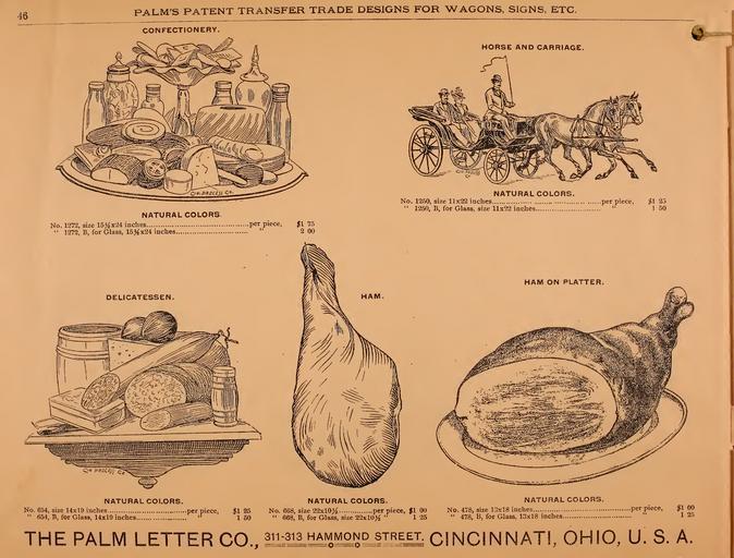 MAKE A MEME View Large Image Public Domain Book:Illustrated sample book & price list of Palm's patent transfer letters ornaments & trade designs for signs, wagons, cars, machines, etc manufactured by the Palm Letter Co Published 1901 in Cincinnati . ...