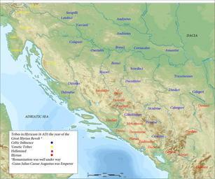 Keywords: IllyricumAD6RomanConditionofTribes.png en Tribes in Illyricum and environs during AD 6 the year of the Great Illyrian revolt Own work data from Pannonia and Upper Moesia a history of the middle Danube provinces of the Roman Empire 1974 ISBN-0710077149 The Cambridge Ancient History Vol 10 The Augustan Empire 43 BC-AD 69 ISBN-10 0521264308 1996 The Illyrians The Peoples of Europe by John Wilkes 1996 ISBN-9780631198079 The Art treasures of Bosnia and Herzegovina by Đuro Basler Mirza Filipović Sulejman Balić 1987 Grčki utjecaj na istočnoj obali Jadrana zbornik radova sa znanstvenog skupa održanog 24 do 26 rujna 1998 godine u Splitu by Nenad Cambi ISBN-9531631549 2002 The Oxford Classical Dictionary by Simon Hornblower and Antony Spawforth 2003 Rivolta_pannonica_6_jpg JPG A dictionary of the Roman Empire Oxford paperback reference ISBN-0195102339 1995 Blank map from Dinaric_Alps_map-fr svg Own Megistias 2009-09-11 Maps of Illyria Maps of the history of the ancient Balkans Celtic studies Maps of ancient Rome Maps concerning Augustus Tiberius Maps showing 1st-century history Maps of Pannonia Maps relating to Celts Maps of the history of Dalmatia Maps of Dacia Illyrians |