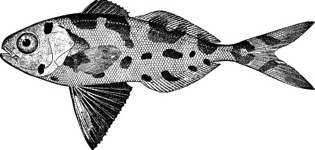 | Keywords: bookid:cu31924002863045 bookidcu31924002863045 bookyear:1907 bookyear1907 bookdecade:1900 bookdecade1900 bookcentury:1900 bookcentury1900 bookauthor:smith_hugh_mccormick_1865_1941 bookauthorsmithhughmccormick18651941 booksubject:fishes booksubjectfishes bookpublisher:raleigh_n_c_e_m_uzzell bookpublisherraleighncemuzzell bookcontributor:cornell_university_library bookcontributorcornelluniversitylibrary booksponsor:msn booksponsormsn bookleafnumber:251 bookleafnumber251 bookcollection:cornell bookcollectioncornell bookcollection:biodiversity bookcollectionbiodiversity bookcollection:americana bookcollectionamericana bhl collection bhlcollection bhl consortium bhlconsortium blackandwhite monochrome white background black and white Title: The fishes of North Carolina Identifier: cu31924002863045 Year: 1907 (1900s) Authors: Smith, Hugh McCormick, 1865-1941 Subjects: Fishes Publisher: Raleigh, N. C. : E. M. Uzzell Contributing Library: Cornell University Library Digitizing Sponsor: MSN View Book Page: Book Viewer About This Book: Catalog Entry View All Images: All Images From Book Click here to view book online to see this illustration in context in a browseable online version of this book. Text Appearing Before Image: 222 FISHES OF NORTH CAROLINA. Diagnosis.—Depth contained 3.8 times in total length, the dorsal and ventral outlines equally curved; head contained 3.4 timesin length; maxillary extending under anterior part of eye; eye contained 3.2 times in head, snout 4 times; scales in lateral series 65; dorsal rays IX or x + i,25 to 27; anal rays iii,25 to 27; ventrals extending to front of anal, a little shorter than head; pectorals extending beyond front of anal. Color: light brown above, silvery below, sides with large brown spots; caudal with brown spots; anal with 3 brown spots; ventrals black with silvery margin; pectorals brown above, white below. (Named for the celebrated Dutch ichthyologist, Gronovius, contemporary with Linnaeus.) Text Appearing After Image: Fig. 94. PoRTUGUBSE-MAN-OF-wAR-piSH. Nomeus gronovii. This native of tropical waters (West and East Indian) is abundant in the Sargasso Sea and not uncommon in southern Florida; at more northern points on the United States coast it occurs as a straggler. Dr. Jenkins took an example half an inch long in a tow net at Beaufort in the summer of 1885, and states that in fall the fish is common, &quot;then found only in a medusa, the medusa never being found without a Nomeus&quot;. Prof. Wilson also records the fish as occurring at Beaufort in the bell-cavity of the medusa Stomolophus. The present author has noted the occurrence at Woods Hole, Mass., of as many as 12 of these fish under a single specimen of the medusa known as the &quot;Portuguese man-of-war&quot; (Physalia). The usual length attained is 5 or 6 inches. Genus PSENES Cuvier and Valenciennes. Body rather deep and compressed; mouth small, overhung by the swollen snout; jaw teeth in a single series; no teeth on tongue and vomer in young; scales of small or moderate size, covering body; first dorsal with 10 or 11 spines; second dorsal and anal long and similar; anal spines 3, not separate from soft part. There are 5 or 6 American species, some found in very deep water and some at the surface; 1 known from North Carolina coast. (Psenes, osprey or fish-hawk, a name .of no obvious application.) 191. PSENES REGULUS Poey. Psenes regulus Poey, Synopsis piscium cubensium, 375, 1868; Cuba. Jordan &amp; Evermann, 1896, 951. Diagnosis.—Body oval, much compressed, depth .4 length; head about equal to depth; eye large, more than .3 head; teeth on jaws in one row, short, slender; dorsal rays x,16 to x,18; Note About Images Please note that these images are extracted from scanned page images that may have been digitally enhanced for readability - coloration and appearance of these illustrations may not perfectly resemble the original work. Title: The fishes of North Carolina Identifier: cu31924002863045 Year: 1907 (1900s) Authors: Smith, Hugh McCormick, 1865-1941 Subjects: Fishes Publisher: Raleigh, N. C. : E. M. Uzzell Contributing Library: Cornell University Library Digitizing Sponsor: MSN View Book Page: Book Viewer About This Book: Catalog Entry View All Images: All Images From Book Click here to view book online to see this illustration in context in a browseable online version of this book. Text Appearing Before Image: 222 FISHES OF NORTH CAROLINA. Diagnosis.—Depth contained 3.8 times in total length, the dorsal and ventral outlines equally curved; head contained 3.4 timesin length; maxillary extending under anterior part of eye; eye contained 3.2 times in head, snout 4 times; scales in lateral series 65; dorsal rays IX or x + i,25 to 27; anal rays iii,25 to 27; ventrals extending to front of anal, a little shorter than head; pectorals extending beyond front of anal. Color: light brown above, silvery below, sides with large brown spots; caudal with brown spots; anal with 3 brown spots; ventrals black with silvery margin; pectorals brown above, white below. (Named for the celebrated Dutch ichthyologist, Gronovius, contemporary with Linnaeus.) Text Appearing After Image: Fig. 94. PoRTUGUBSE-MAN-OF-wAR-piSH. Nomeus gronovii. This native of tropical waters (West and East Indian) is abundant in the Sargasso Sea and not uncommon in southern Florida; at more northern points on the United States coast it occurs as a straggler. Dr. Jenkins took an example half an inch long in a tow net at Beaufort in the summer of 1885, and states that in fall the fish is common, "then found only in a medusa, the medusa never being found without a Nomeus". Prof. Wilson also records the fish as occurring at Beaufort in the bell-cavity of the medusa Stomolophus. The present author has noted the occurrence at Woods Hole, Mass., of as many as 12 of these fish under a single specimen of the medusa known as the "Portuguese man-of-war" (Physalia). The usual length attained is 5 or 6 inches. Genus