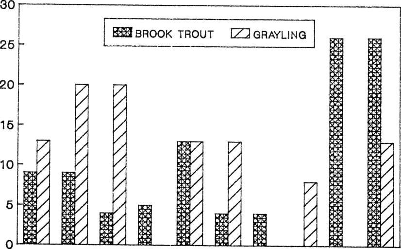| Keywords: bookid:7b89fe86-7752-4269-b518-48161a3c58f3 bookid7b89fe8677524269b51848161a3c58f3 bookyear:1990 bookyear1990 bookdecade:1990 bookdecade1990 bookcentury:1900 bookcentury1900 bookauthor:streu_jon_m bookauthorstreujonm bookauthor:montana_natural_heritage_program bookauthormontananaturalheritageprogram bookauthor:beaverhead_deerlodge_national_forest_agency_u_s_ bookauthorbeaverheaddeerlodgenationalforestagencyus bookauthor:montana_dept_of_fish_wildlife_and_parks bookauthormontanadeptoffishwildlifeandparks bookauthor:montana_cooperative_fisheries_research_unit bookauthormontanacooperativefisheriesresearchunit booksubject:arctic_grayling booksubjectarcticgrayling booksubject:fish_populations booksubjectfishpopulations booksubject:fishes booksubjectfishes bookpublisher:helena_mont_montana_natural_heritage_program bookpublisherhelenamontmontananaturalheritageprogram bookcontributor:montana_state_library bookcontributormontanastatelibrary bookleafnumber:42 bookleafnumber42 bookcollection:montanastatelibrary bookcollectionmontanastatelibrary bookcollection:americana bookcollectionamericana bhl collection bhlcollection blackandwhite monochrome text photo border white background bookid:3b14a17e-a59d-43fb-b7c1-689fe4f8170f bookid3b14a17ea59d43fbb7c1689fe4f8170f bookyear:1990 bookyear1990 bookdecade:1990 bookdecade1990 bookcentury:1900 bookcentury1900 bookauthor:mcmichael_geoffrey_a bookauthormcmichaelgeoffreya bookauthor:montana_natural_heritage_program bookauthormontananaturalheritageprogram bookauthor:beaverhead_deerlodge_national_forest_agency_u_s_ bookauthorbeaverheaddeerlodgenationalforestagencyus bookauthor:united_states_bureau_of_land_management_butte_district bookauthorunitedstatesbureauoflandmanagementbuttedistrict bookauthor:montana_dept_of_fish_wildlife_and_parks bookauthormontanadeptoffishwildlifeandparks bookauthor:montana_cooperative_fisheries_research_unit bookauthormontanacooperativefisheriesresearchunit booksubject:arctic_grayling booksubjectarcticgrayling booksubject:fish_populations booksubjectfishpopulations booksubject:fishes booksubjectfishes bookpublisher:helena_mont_montana_natural_heritage_program bookpublisherhelenamontmontananaturalheritageprogram bookcontributor:montana_state_library bookcontributormontanastatelibrary bookleafnumber:42 bookleafnumber42 bookcollection:montanastatelibrary bookcollectionmontanastatelibrary bookcollection:americana bookcollectionamericana bhl collection bhlcollection blackandwhite monochrome text photo border white background black and white Title: Select aspects of the life history and ecology of the Montana arctic grayling (Thymallus arcticus montanus) [Milner] in the Upper Big Hole River drainage, Montana, June 15 to August 31, 1990 : final report Identifier: 7B89FE86-7752-4269-B518-48161A3C58F3 Year: 1990 (1990s) Authors: Streu, Jon M; Montana Natural Heritage Program; Beaverhead-Deerlodge National Forest (Agency : U. S. ); Montana. Dept. of Fish, Wildlife, and Parks; Montana Cooperative Fisheries Research Unit Subjects: Arctic grayling; Fish populations; Fishes Publisher: Helena, Mont. : Montana Natural Heritage Program Contributing Library: Montana State Library View Book Page: Book Viewer About This Book: Catalog Entry View All Images: All Images From Book Click here to view book online to see this illustration in context in a browseable online version of this book. Text Appearing Before Image: p E R C £ N T O F V o L U M E Text Appearing After Image: MAY GAD STN SCUD AQBTL TER LCH FOOD ITEM WRM FSH CRN Figure 15. Percent volume of stomach contents of 10 inch and larger Arctic grayling and brook trout from the Big Hole River and its tributaries made up of various food items. MAY=Mayfly, CAD=Caddisfly, STN=Stoneflyf SCUD=Amphipod Crustacean, AQBTL=Aguatic Beetle, TER=Terrestrial Insect, LCH= Leech, WRM=Worm, FSH=Fish, CRN=Cranefly 37 Note About Images Please note that these images are extracted from scanned page images that may have been digitally enhanced for readability - coloration and appearance of these illustrations may not perfectly resemble the original work. Title: Select aspects of the life history and ecology of the Montana arctic grayling (Thymallus arcticus montanus) [Milner] in the Upper Big Hole River drainage, Montana, June 15 to August 31, 1990 : final report Identifier: 7B89FE86-7752-4269-B518-48161A3C58F3 Year: 1990 (1990s) Authors: Streu, Jon M; Montana Natural Heritage Program; Beaverhead-Deerlodge National Forest (Agency : U. S. ); Montana. Dept. of Fish, Wildlife, and Parks; Montana Cooperative Fisheries Research Unit Subjects: Arctic grayling; Fish populations; Fishes Publisher: Helena, Mont. : Montana Natural Heritage Program Contributing Library: Montana State Library View Book Page: Book Viewer About This Book: Catalog Entry View All Images: All Images From Book Click here to view book online to see this illustration in context in a browseable online version of this book. Text Appearing Before Image: p E R C £ N T O F V o L U M E Text Appearing After Image: MAY GAD STN SCUD AQBTL TER LCH FOOD ITEM WRM FSH CRN Figure 15. Percent volume of stomach contents of 10 inch and larger Arctic grayling and brook trout from the Big Hole River and its tributaries made up of various food items. MAY=Mayfly, CAD=Caddisfly, STN=Stoneflyf SCUD=Amphipod Crustacean, AQBTL=Aguatic Beetle, TER=Terrestrial Insect, LCH= Leech, WRM=Worm, FSH=Fish, CRN=Cranefly 37 Note About Images Please note that these images are extracted from scanned page images that may have been digitally enhanced for readability - coloration and appearance of these illustrations may not perfectly resemble the original work. Title: Distribution, relative abundance and habitat utilization of the arctic grayling (Thymallus arcticus) in the Upper Big Hole River Drainage, Montana, June 21 to August 28, 1989 : final report Identifier: 3B14A17E-A59D-43FB-B7C1-689FE4F8170F Year: 1990 (1990s) Authors: McMichael, Geoffrey A; Montana Natural Heritage Program;