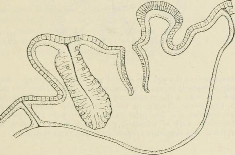 | Keywords: bookid:s7annalsmagazine17londuoft bookids7annalsmagazine17londuoft bookyear:1838 bookyear1838 bookdecade:1830 bookdecade1830 bookcentury:1800 bookcentury1800 booksubject:natural_history booksubjectnaturalhistory bookpublisher:london___taylor___francis bookpublisherlondontaylorfrancis bookcontributor:gerstein___university_of_toronto bookcontributorgersteinuniversityoftoronto booksponsor:university_of_toronto booksponsoruniversityoftoronto bookleafnumber:482 bookleafnumber482 bookcollection:toronto bookcollectiontoronto bhl collection bhlcollection sketch drawing cartoon illustration indoor monochrome writing text bookid:s7annalsmagazine17londuoft bookids7annalsmagazine17londuoft bookyear:1838 bookyear1838 bookdecade:1830 bookdecade1830 bookcentury:1800 bookcentury1800 booksubject:natural_history booksubjectnaturalhistory bookpublisher:london___taylor___francis bookpublisherlondontaylorfrancis bookcontributor:gerstein___university_of_toronto bookcontributorgersteinuniversityoftoronto booksponsor:university_of_toronto booksponsoruniversityoftoronto bookleafnumber:482 bookleafnumber482 bookcollection:toronto bookcollectiontoronto bhl collection bhlcollection sketch drawing cartoon illustration indoor monochrome writing text bookid:s7annalsmagazine17londuoft bookids7annalsmagazine17londuoft bookyear:1838 bookyear1838 bookdecade:1830 bookdecade1830 bookcentury:1800 bookcentury1800 booksubject:natural_history booksubjectnaturalhistory bookpublisher:london___taylor___francis bookpublisherlondontaylorfrancis bookcontributor:gerstein___university_of_toronto bookcontributorgersteinuniversityoftoronto booksponsor:university_of_toronto booksponsoruniversityoftoronto bookleafnumber:482 bookleafnumber482 bookcollection:toronto bookcollectiontoronto bhl collection bhlcollection sketch drawing cartoon illustration indoor monochrome writing text bookid:s7annalsmagazine17londuoft bookids7annalsmagazine17londuoft bookyear:1838 bookyear1838 bookdecade:1830 bookdecade1830 bookcentury:1800 bookcentury1800 booksubject:natural_history booksubjectnaturalhistory bookpublisher:london___taylor___francis bookpublisherlondontaylorfrancis bookcontributor:gerstein___university_of_toronto bookcontributorgersteinuniversityoftoronto booksponsor:university_of_toronto booksponsoruniversityoftoronto bookleafnumber:482 bookleafnumber482 bookcollection:toronto bookcollectiontoronto bhl collection bhlcollection sketch drawing cartoon illustration indoor monochrome writing text Identifier: s7annalsmagazine17londuoft Title: The annals and magazine of natural history : zoology, botany, and geology Year: 1838 (1830s) Authors: Subjects: Natural history Publisher: London : Taylor &amp; Francis Contributing Library: Gerstein - University of Toronto Digitizing Sponsor: University of Toronto View Book Page: Book Viewer About This Book: Catalog Entry View All Images: All Images From Book Click here to view book online to see this illustration in context in a browseable online version of this book. Text Appearing Before Image: length. The section passes to one side of thestomodaeum. above, and the mesogloea of the latter is continued down thecentre as a kind of supporting axis; the other two are hereshown free from the disk, though in other sections the con-tinuity is shown. Fig. 2 represents a section through thestomoda?ura of another polyp; here the single downgrowthto the lett clearly corresponds in position with the normaltentacular upgrowth to the right and is much longer. Morpliulogy of the Madreporarii. 4Gi) The transverse section dcpicttiJ in fi^. 3 proves that thethree or&lt;^ans occur at what is known as the dorsal border ofthe polyp, one being within tlie dorsal directive entocojle andone within the cxocccle on each side of the directive entocoehi,cxac:ly as described by Krcnipf for the lied Sea Pocillopora.In sections of some polyps they occupy nearly the entiremesenterial chamber, while in others they are so enlarged asto result in disturbances of the mesenteries by pressing u{)ontheai. Fig. 2. Text Appearing After Image: Vertical section through a polyp. The section pass\s through thostomotlauni, and includes a retracted normal tentacle on the rightand a luoditied invaginated tentacle on tlie left. An examination of a large number of pol^ps reveals thatthe dowiigrowths are not always three in number; sometimesthere are only two, and in other instances only one, but nevermore than three occur. In the polyp represented in sectionby tig. 4 only one downgrowth is present, situated in theexocade to the right of the dorsal directive entocoele. Thepolyp is moi*e retracted than that from which tig. 3 was taken,and the intrusion disturbs the regularity of form of themesenteries and stomocheum. As noticed by Krenipf, the modification occurs in oidy alimited number of the many poly[)s making up a colony; the * There is possibly some confusion as regards the terms dorsal andYi-ntral. Krenipf states that the media;) organ in Jucino/wra occurswithin the ventral directive chaniher, whereas in the Hawaiian specimensi Note About Images Please note that these images are extracted from scanned page images that may have been digitally enhanced for readability - coloration and appearance of these illustrations may not perfectly resemble the original work. Identifier: s7annalsmagazine17londuoft Title: The annals and magazine of natural history : zoology, botany, and geology Year: 1838 (1830s) Authors: Subjects: Natural history Publisher: London : Taylor & Francis Contributing Library: Gerstein - University of Toronto Digitizing Sponsor: University of Toronto View Book Page: Book Viewer About This Book: Catalog Entry View All Images: All Images From Book Click here to view book online to see this illustration in context in a browseable online version of this book. Text Appearing Before Image: length. The section passes to one side of thestomodaeum. above, and the mesogloea of the latter is continued down thecentre as a kind of supportin