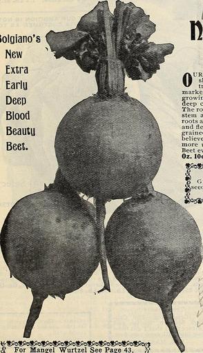 | Keywords: bookid:jbolgianoson181819jbol bookidjbolgianoson181819jbol bookyear:1904 bookyear1904 bookdecade:1900 bookdecade1900 bookcentury:1900 bookcentury1900 bookauthor:j__bolgiano___son bookauthorjbolgianoson bookauthor:henry_g__gilbert_nursery_and_seed_trade_catalog_collection bookauthorhenryggilbertnurseryandseedtradecatalogcollection booksubject:seeds_maryland_baltimore_catalogs booksubjectseedsmarylandbaltimorecatalogs booksubject:vegetables_maryland_baltimore_catalogs booksubjectvegetablesmarylandbaltimorecatalogs booksubject:flowers_maryland_baltimore_catalogs booksubjectflowersmarylandbaltimorecatalogs booksubject:fruit_maryland_baltimore_catalogs booksubjectfruitmarylandbaltimorecatalogs booksubject:grasses_maryland_baltimore_catalogs booksubjectgrassesmarylandbaltimorecatalogs booksubject:gardening_maryland_baltimore_equipment_and_supplies_catalogs booksubjectgardeningmarylandbaltimoreequipmentandsuppliescatalogs booksubject:nurseries__horticulture__maryland_baltimore_catalogs booksubjectnurserieshorticulturemarylandbaltimorecatalogs bookpublisher:baltimore__md____bolgiano bookpublisherbaltimoremdbolgiano bookcontributor:u_s__department_of_agriculture__national_agricultural_library bookcontributorusdepartmentofagriculturenationalagriculturallibrary booksponsor:u_s__department_of_agriculture__national_agricultural_library booksponsorusdepartmentofagriculturenationalagriculturallibrary bookleafnumber:8 bookleafnumber8 bookcollection:biodiversity bookcollectionbiodiversity bookcollection:usda-nurseryandseedcatalog bookcollectionusdanurseryandseedcatalog bookcollection:usdanationalagriculturallibrary bookcollectionusdanationalagriculturallibrary bookcollection:fedlink bookcollectionfedlink bookcollection:americana bookcollectionamericana bhl collection bhlcollection bhl consortium bhlconsortium outdoor monochrome bookid:jbolgianoson181819jbol bookidjbolgianoson181819jbol bookyear:1904 bookyear1904 bookdecade:1900 bookdecade1900 bookcentury:1900 bookcentury1900 bookauthor:j__bolgiano___son bookauthorjbolgianoson bookauthor:henry_g__gilbert_nursery_and_seed_trade_catalog_collection bookauthorhenryggilbertnurseryandseedtradecatalogcollection booksubject:seeds_maryland_baltimore_catalogs booksubjectseedsmarylandbaltimorecatalogs booksubject:vegetables_maryland_baltimore_catalogs booksubjectvegetablesmarylandbaltimorecatalogs booksubject:flowers_maryland_baltimore_catalogs booksubjectflowersmarylandbaltimorecatalogs booksubject:fruit_maryland_baltimore_catalogs booksubjectfruitmarylandbaltimorecatalogs booksubject:grasses_maryland_baltimore_catalogs booksubjectgrassesmarylandbaltimorecatalogs booksubject:gardening_maryland_baltimore_equipment_and_supplies_catalogs booksubjectgardeningmarylandbaltimoreequipmentandsuppliescatalogs booksubject:nurseries__horticulture__maryland_baltimore_catalogs booksubjectnurserieshorticulturemarylandbaltimorecatalogs bookpublisher:baltimore__md____bolgiano bookpublisherbaltimoremdbolgiano bookcontributor:u_s__department_of_agriculture__national_agricultural_library bookcontributorusdepartmentofagriculturenationalagriculturallibrary booksponsor:u_s__department_of_agriculture__national_agricultural_library booksponsorusdepartmentofagriculturenationalagriculturallibrary bookleafnumber:8 bookleafnumber8 bookcollection:biodiversity bookcollectionbiodiversity bookcollection:usda-nurseryandseedcatalog bookcollectionusdanurseryandseedcatalog bookcollection:usdanationalagriculturallibrary bookcollectionusdanationalagriculturallibrary bookcollection:fedlink bookcollectionfedlink bookcollection:americana bookcollectionamericana bhl collection bhlcollection bhl consortium bhlconsortium outdoor monochrome Identifier: jbolgianoson181819jbol Title: J. Bolgiano &amp; Son : 1818 1904 Year: 1904 (1900s) Authors: J. Bolgiano &amp; Son Henry G. Gilbert Nursery and Seed Trade Catalog Collection Subjects: Seeds Maryland Baltimore Catalogs Vegetables Maryland Baltimore Catalogs Flowers Maryland Baltimore Catalogs Fruit Maryland Baltimore Catalogs Grasses Maryland Baltimore Catalogs Gardening Maryland Baltimore Equipment and supplies Catalogs Nurseries (Horticulture) Maryland Baltimore Catalogs Publisher: Baltimore, Md. : Bolgiano Contributing Library: U.S. Department of Agriculture, National Agricultural Library Digitizing Sponsor: U.S. Department of Agriculture, National Agricultural Library View Book Page: Book Viewer About This Book: Catalog Entry View All Images: All Images From Book Click here to view book online to see this illustration in context in a browseable online version of this book. Text Appearing Before Image: Text Appearing After Image: &lt;§ For Mangel Wurtzel See Page 43. ff \ Our Beet Seed is grown from SELECTED TRANSPLANTED t ROOTS and has given truckers and market gardeners, who li appreciate a high standard of perfection, the utmost satis- i faction, i oz. will sow 50 ft. drill, 5 or 6 lbs. to acre. new 1904 Beet. BOLGIANOS ROYAL RED BEET. Twelve Leading Points of this Grand New Beet-Handsome shape, a little deeper than round.Rich, deep, crimson flesh.Exceedingly tender.Medium size, not large or coarse.Excellent for both early and main crop.Tops very small and dark.Skin very dark and remarkably smooth. 8. It has a small tap root. q. Specially early and shapely on light soil. 10. Beautifully ringed or zoned when cut open,which makes it a very attractive dish. 11. Excellent keeper. 12. Deliciously sweet.PKt. 10c, oz. 15c. 1/4 Lb. 40c, 1/2 lb.60c, 1 lb. $1.00. jSl The Recommendations we are daily receiving from ifflour friends spur us on to greater efforts. # ,/ Bolgianos Hew €xtra Deep Blood ^BSStf^^Beauty Bee Note About Images Please note that these images are extracted from scanned page images that may have been digitally enhanced for readability - coloration and appearance of these illustrations may not perfectly resemble the original work. Identifier: jbolgianoson181819jbol Title: J. Bolgiano & Son : 1818 1904 Year: 1904 (1900s) Authors: J. Bolg