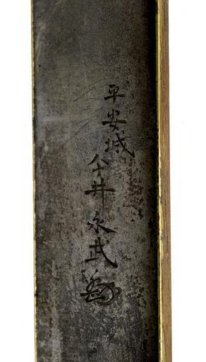 Keywords: Imai Nagatake - Kozuka with a Spade and Orchids - Walters 51720 - Mark A.jpg Two orchids and leaves are tied to a spade The background is a fish egg pattern nanakoji with a raised rim The artist signed the kozuka on the reverse between 1818 1882 late Edo-Meiji shakudo gold silver copper cm 9 6 accession number 51 720 39185 Henry Walters Baltimore date and mode of acquisition unknown Walters Art Museum Henry Walters Acquired by Henry Walters Signature Heianjô Imai Nagatake; Number On sticker edged with a blue trellis pattern 378 place of origin Kyoto Japan Walters Art Museum license Kozuka in the Walters Art Museum Imai Nagatake Media contributed by the Walters Art Museum needs category review |