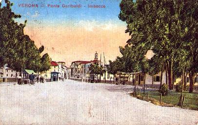 Keywords: Imbocco Ponte Garibaldi VR Cartolina.jpg en Ponte Garibaldi in Verona Italy in a vintage postcard it Cartolina d'epoca di Verona raffigurante l'imbocco di Ponte Garibaldi da Borgo Trento Postcard author 1890 Postcards of Verona 1890 postcards of Italy PD-old |