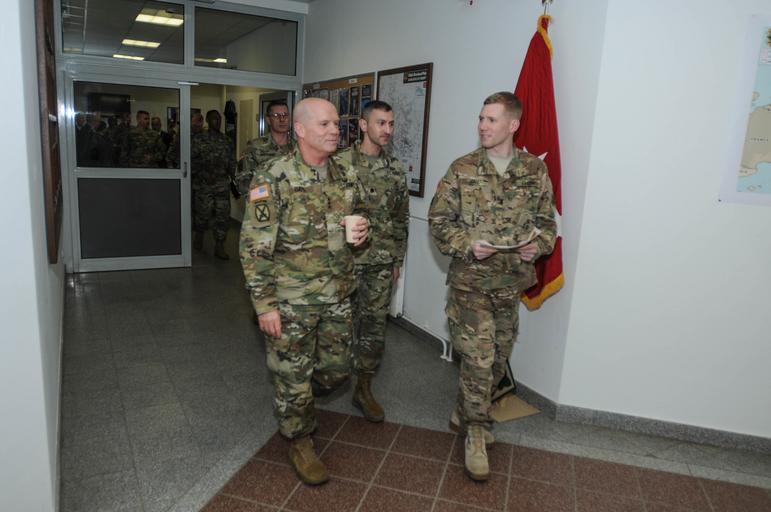 | Keywords: 4id mce baumholder rheinland-pfalz rheinlandpfalz germany de Lt. Gen. Kenneth R. Dahl (left), the commanding general of U.S. Army Installation Management Command, talks with 4th Infantry Division, Mission Command Element battle captain, 1st Lt. Robert Hall, before going into the Joint Operation Center in the 4th Infantry Division MCE headquarters at Baumholder, Germany, Jan. 13, 2016. Dahl took a tour of the facilities and was given an operational brief about the unit’s mission in support of Atlantic Resolve. (Photo by Sgt. 1st Class Jason Epperson, MCE PAO, VIRIN: 160113-A-RK974-512) Lt. Gen. Kenneth R. Dahl (left), the commanding general of U.S. Army Installation Management Command, talks with 4th Infantry Division, Mission Command Element battle captain, 1st Lt. Robert Hall, before going into the Joint Operation Center in the 4th Infantry Division MCE headquarters at Baumholder, Germany, Jan. 13, 2016. Dahl took a tour of the facilities and was given an operational brief about the unit’s mission in support of Atlantic Resolve. (Photo by Sgt. 1st Class Jason Epperson, MCE PAO, VIRIN: 160113-A-RK974-512) |