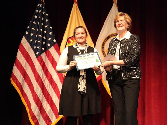 | Keywords: army family and mwr programs armyfamilyandmwrprograms g9 pdp professional development program professionaldevelopmentprogram holiday decoration contest decorationcontest holiday season holidayseason During the IMCOM G9 Family and Morale, Welfare and Recreation's Professional Development Program event, Stephanie Hoehne, director, recognized offices that participated in the holiday decorating contest, Dec. 17, 2015, at the Fort Sam Houston Theatre on Joint Base San Antonio, Texas. The top three office winners were Business Operations (Most Resourceful category), Facilities Management (Most Creative category runner-up), and Nonappropriated Fund Contracting (Most Creative category). (U.S. Army photo by Jessica Ryan) During the IMCOM G9 Family and Morale, Welfare and Recreation's Professional Development Program event, Stephanie Hoehne, director, recognized offices that participated in the holiday decorating contest, Dec. 17, 2015, at the Fort Sam Houston Theatre on Joint Base San Antonio, Texas. The top three office winners were Business Operations (Most Resourceful category), Facilities Management (Most Creative category runner-up), and Nonappropriated Fund Contracting (Most Creative category). (U.S. Army photo by Jessica Ryan) |