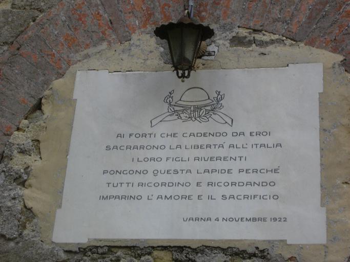 | Keywords: IMG 0294 S.Giovanni Battista a Varna, Lapide.JPG it Lapide della Chiesa di San Giovanni Battista a Varna comune di Gambassi Terme provincia di Firenze en Commemorative Stone at the Church of John the Baptist in Varna Municipality Gambassi Terme Province of Florence de Gedenkstein an der Kirche žJohannes der Täufer in Varna Gemeinde Gambassi Terme Provinz Florenz Own Matteo Tani 05ott 2008 43 56668 10 976602 type landmark_region IT_heading SSW San Giovanni Battista a Varna | ||||