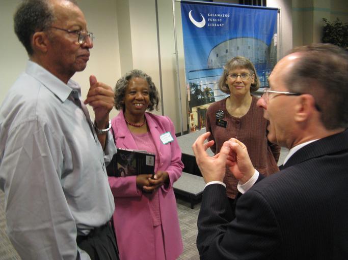 Keywords: kalamazoo public library kalamazoopubliclibrary author books writing literature education Author Walter Dean Myers, Library of Congress National Ambassador for Young People's Literature, at Kalamazoo Public Library with KPL and KPS staff and administrators, August 7, 2013. www.kpl.gov photo by Keith Howard Author Walter Dean Myers, Library of Congress National Ambassador for Young People's Literature, at Kalamazoo Public Library with KPL and KPS staff and administrators, August 7, 2013. www.kpl.gov photo by Keith Howard