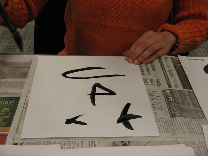 | Keywords: kalamazoo library reading together community art craft shodo japan culture indoor On March 16, 2010, Michiko Yoshimoto, Japan Outreach Coordinator at the Soga Japan Center of Western Michigan University, and a member of the Reading Together Steering Committee, explained the basics of shodo, the way of writing the Japanese language. www.readingtogether.us On March 16, 2010, Michiko Yoshimoto, Japan Outreach Coordinator at the Soga Japan Center of Western Michigan University, and a member of the Reading Together Steering Committee, explained the basics of shodo, the way of writing the Japanese language. www.readingtogether.us |