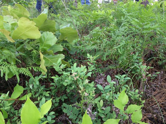 Keywords: outdoor garden Ground story in a longleaf woodland on a ridge. Blackjack oak, blueberry, bracken fern. Ground story in a longleaf woodland on a ridge. Blackjack oak, blueberry, bracken fern.