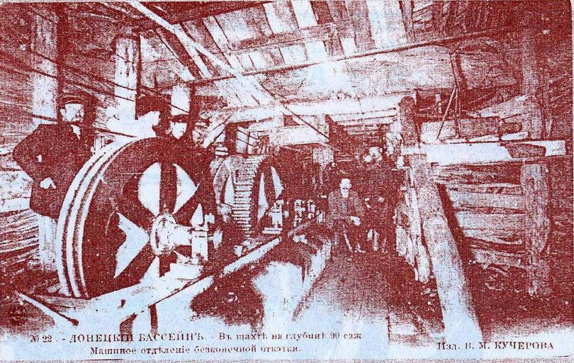 View Original:Донецкий бассейн. В шахте на глубине 90 сажень. Машинное отделение бесконечной откатки.jpg (1179x745)
