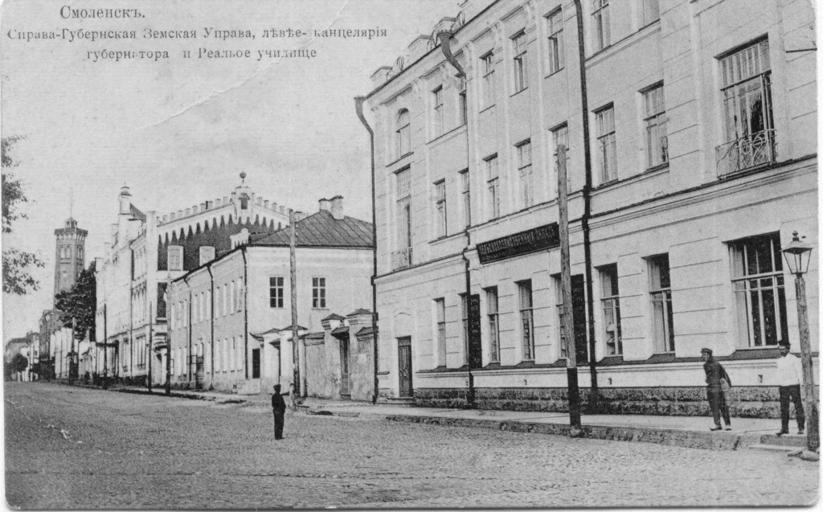 Keywords: Земская управа, канцелярия губернатора и реальное училище.jpg en Smolensk View of the current Communist street right - Provincial Zemstvo the current City Hall Smolensk Office of the Governor and the Alexander Real School now - the House of Youth ru Смоленск Вид на нынешнюю Коммунистическую улицу сп ава - Губе нская земская уп ава нынешняя мэ ия Смоленск канцеля ия губе нато а и Александ овское еальное училище ныне - Дом олодёжи О игинальная отк ытка е установлены before 1917 года PD-RusEmpire 20th-century postcards of Russia Postcards of Smolensk Zemstvo |