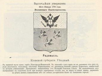 | Keywords: Герб Радомысля Киевской губернии 1796 (Винклер).jpg ru Ге б Радомысля Киевской губе нии 1796 года с описанием из ге бовника Винкле а uk Ге б Радомисля Київської губе нії 1796 оку з описом з ге бовника Вінкле а February 2 1796 January 22 File Путивль Пятиго ск Радомысль из Винкле а jpg П П фон Винкле PD-RusEmpire Uploaded with UploadWizard Coats of arms of cities in Kiev Governorate Gerbovnik Vinklera - City CoAs Радомысль Radomyshl | ||||