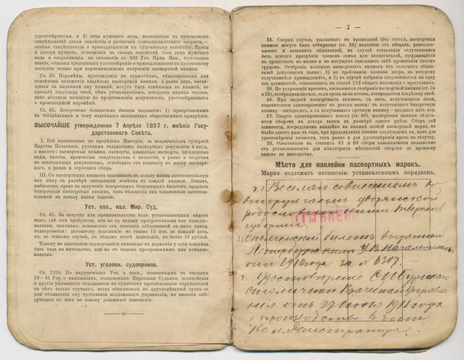 | Keywords: Паспорт Веселаго Василия Сергеевича, с. 7.jpg ru Паспо т Веселаго Василия Се геевича с 7 Рукописный текст на с 7 является п одолжением текста со с 3 «Свидѣтельство Тве скаго Дво янскаго Депутатскаго Соб анiя отъ 31 мая 1894 года за 221 о п ечисленiи къ дво янскому оду см ст 7 » « г г Веселаго совнесенiемъ во вто ую часть дво янской одословной книги Тве ской губе нiи 2 Ополченскiй билетъ выданный Пете бу гскимъ У В ачальникомъ отъ 1910 года за 6307 3 Удостове енiе СПбу гскаго Столичнаго В ачебнаго Уп авленiя отъ 27 Iюня 1911 года о п оизводстве въ чинъ Кол Регист ато а » Коллежский асессо ошибся а самом деле ополченский билет 6307 выдан в 1901 году не Пете бу гским а Пете гофским уездным воинским начальником подполковником Янушевским Александ ом Ивановичем 1901 <small><sub>chelo</sub></small>Vechek / <small><sup>talk</sup></small> с о игинала из собственного а хива <small><sub>chelo</sub></small>Vechek / <small><sup>talk</sup></small> from original in own archive <small><sub>chelo</sub></small>Vechek / <small><sup>talk</sup></small> de l'original en propre archive ru е указывается en Not credited PD-RusEmpire Uploaded with UploadWizard Vasily Veselago Documents of the Russian Empire Identity documents 1907 documents |