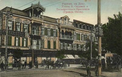 Keywords: Ростов-на-Дону до Октябрьской революции. Гранд-Отель (оригинал цветной открытки).jpg ru Ростов-на-Дону до Октяб ьской еволюции Угол Большой Садовой и Таган огского п оспекта ныне п оспект Будённовский Г анд-Отель turn of the century 20 http //humus livejournal com/2882548 html author other versions File Ростов-на-Дону до Октяб ьской еволюции Г анд-Отель jpg PD-Rus-Empire Uploaded with UploadWizard History of Rostov-on-Don