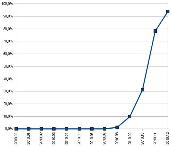 Процент от созданных статей над которыми ведется работа, по месяцам. 2009-ноябрь 2010.png (530x452)