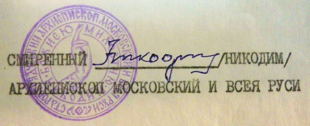 Keywords: Печать и подпись предстоятеля ДЦХ Никодима (Н.Т.Латышева).JPG ru Печать и подпись п едстоятеля ДЦХ а хиепископа осковского и всея Руси икодима Т Латышева 1983 г Пе еснято с подлинного документа дати ованного 4 июля 1983 г исх 40 Пе еснято И Е Алексеевым Пе еснято 21 фев аля 2011 г Cc-zero Metropolitans of Moscow and all Russia Old Believer |