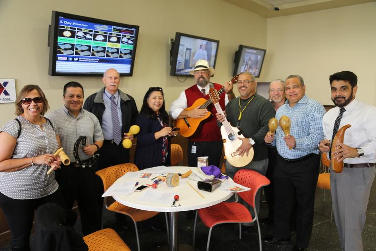 Keywords: IMCOM employees take a brief lunch break to participate and learn about the Caribbean Christmas Tradition called "Parranda."