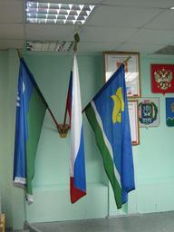 Keywords: Государственная символика в Гимназии.jpg en National symbols in the lobby of Gymnasium 6 ru Госуда ственная символика в холле Гимназии 6 Личное фото афгутдинов Рафаэль 28 04 11 Cc-zero Langepas
