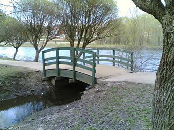 Keywords: Мостик у Псковы.jpg ru остик п и впадении учья в Пскову - нап отив Г емячей го ы Псков own PlatonPskov 2011-05-04 Cc-zero Bridges in Pskov