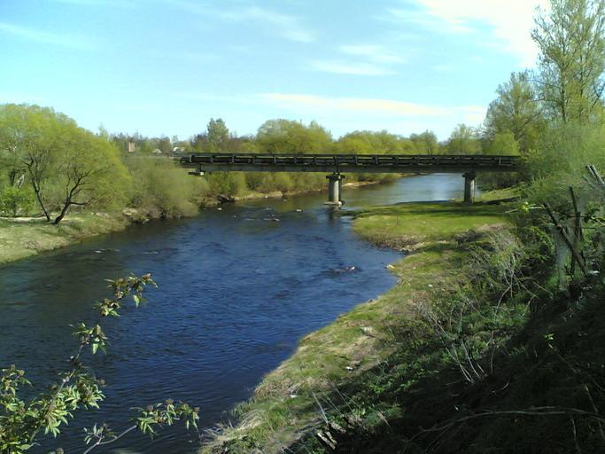 Keywords: Трубопровод через Пскову.jpg ru ост с т убоп оводом че ез Пскову чуть выше Инжене ного моста own PlatonPskov 2011-05-10 Cc-zero Bridges in Pskov