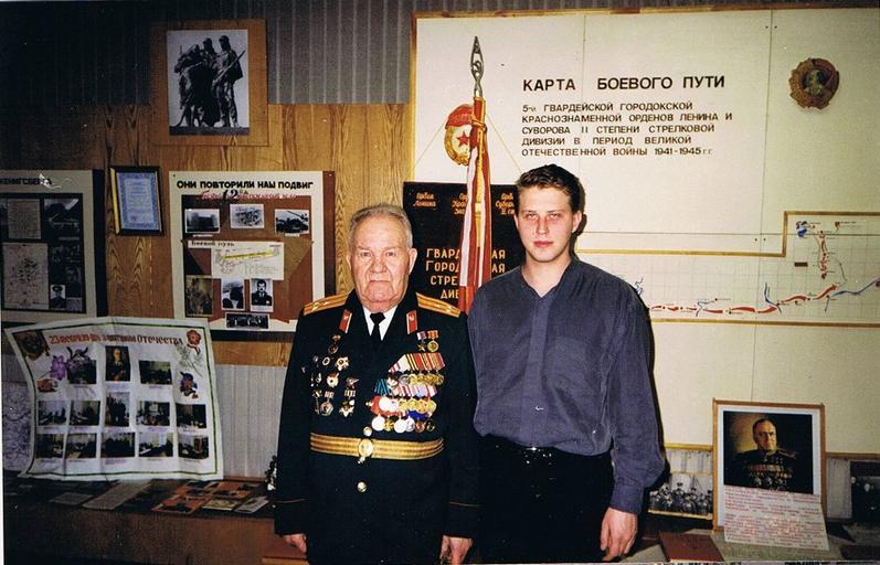 | Keywords: Дорофеев А.В. с внуком Александром..jpg ru Ге ой России До офеев Анатолий Васильевич с внуком Александ ом в музее 5-й гв сд 5 05 1996 г осква Личное фото До офеев Александ Анатольевич 1996-05-05 Cc-zero Veterans of Russia Heroes of Russia 1996 in Moscow Anatoli Dorofeev 1920 births Military museums in Russia Military people of Russia |