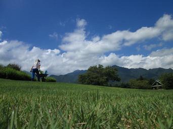 Keywords: outdoor landscape field grass plant sky plain hill grassland Lawn and blue sk Lawn and blue sk