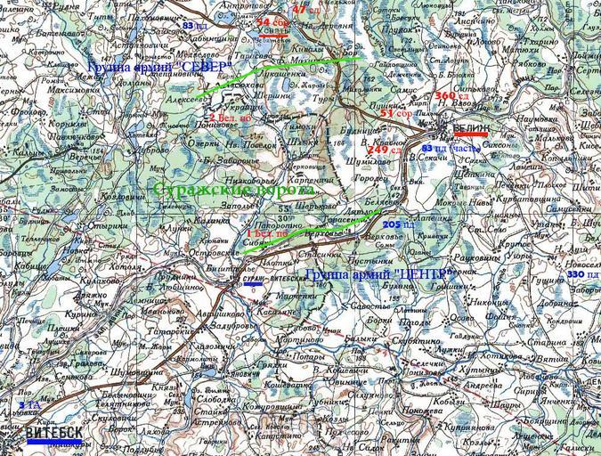Keywords: Витебские (Суражские) ворота.jpg ru Схематичное изоб ажение Витебских Су ажских во от на ка те Генштаба РККА от 1936 года PD-Russia вместе с отметками асположения основных частей К асной А мии и Ве махта в фев але 1942 года en Vitebsk Surazh gate's plan with German and Soviet main forces positions during February 1942 Made on the Soviet HQ pre-war map dated 1936 2014-09-16 18 02 02 own KOT-TOK 55 30 cc-zero Uploaded with UploadWizard Military maps
