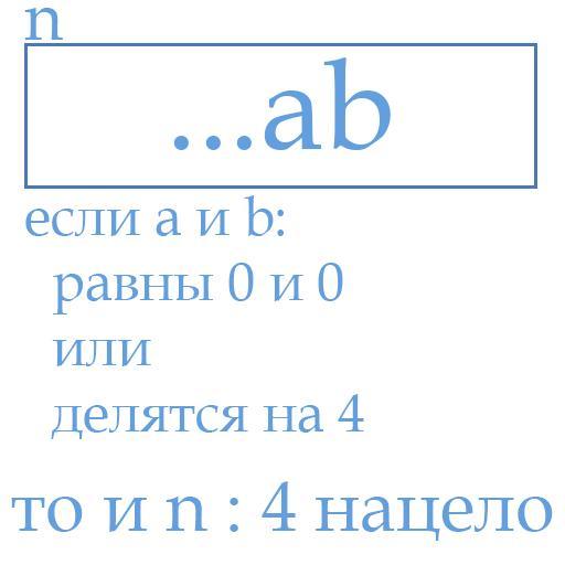 Keywords: Если две последних цифры числа равны нулям или делятся на 4, то и число делится на 4.png ru Иллюст ация деления нату ального числа на 4 12 11 2014 own EasyMath other versions cc-zero Uploaded with UploadWizard Divisibility rules Russian text |