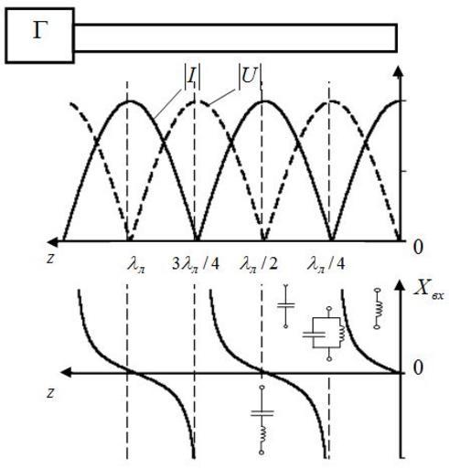 Эпюры напряжений, тока и входного сопротивления в короткозамкнутой линии.JPG (447x466)