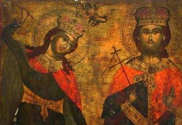 Keywords: Св. Марина и Св. Јован Владимир (Манастир Св. Наум).JPG mk Икона на Св а ина и Св Јован Владими дел од иконостасот на Ц квата Свети А хангели во манасти от Св аум к ај Ох ид акедонија en Icon of St Marina and St John Vladimir part of the iconostasis of the Church Holy Archangels' Monastery in St Naum near Ohrid Macedonia http //www mpc org mk/_images/Galerii/Ikoni/IMG_2313 JPG Hieromonk Konstantin 1711 PD-Macedonia Jovan Vladimir Saint Naum Monastery