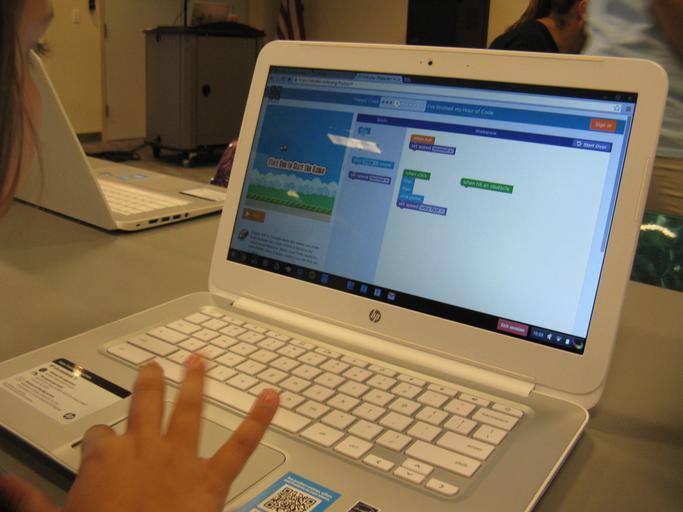 Keywords: kalamazoo kalamazoo public library kalamazoopubliclibrary code computer skills portable computer electronics indoor laptop display screen screen computer screen monitor KPL Code Camp: Kids and parents work together to solve problems and learn basic computer coding skills, then craft a "binary bracelet" to wear and take home. www.kpl,.gov KPL Code Camp: Kids and parents work together to solve problems and learn basic computer coding skills, then craft a "binary bracelet" to wear and take home. www.kpl,.gov