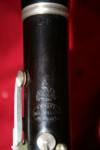Keywords: penzal müller mueller clarinet a wood vintage indoor The top, LH, section marked with the emblem and the key, A. The top, LH, section marked with the emblem and the key, A.
