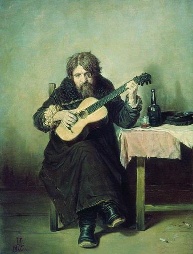 Keywords: Гитарист-бобыль.jpg Man in a long coat sits by a table playing the guitar On the table stand a bottle and a glass Гита ист-бобыль http //www picture art-catalog ru/picture php id_picture 12503 1865 Creator Wassilij Grigorjewitsch Perow PD-old-100 1865 paintings from Russia Music in 1865 Portraits with guitars Art works uploaded by Andrew Butko from various sources 1000-1999 px on long side Genre paintings by Vasilij Perov Files uploaded by Andrew Butko from various sources 19th century Paintings of sitting men playing musical instruments indoors