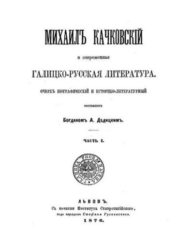 | Keywords: Книга Богдана Дедицкого.JPG Титульный лист книги Богдана Дедицкого ихаил Качковский и галицко- усская лите ату а - Lista de Titulos de Bogdan Deditsky Mijáil Kachkovsky y la literatura rusa de Galitzia Russian wikipedia 1876 Богдан Дедицкий Bogdan Deditsky 1827-1909 PD-old PD-old History of Lviv |